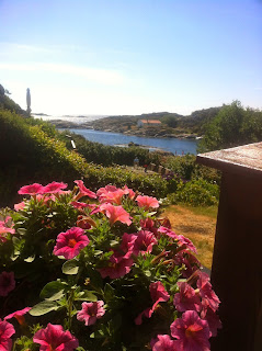 i ferien og. Dette er riktig nok noen dager siden... det har vært så innmari varmt i det siste så kroppen har bedt pent om å slippe:) Kommer sterkere tilbake, prøver jo å holde meg i form.. Bildene du ser her ( siste bilde- begynner litt i feil ende men..) er "inngangsporten" til joggerunden, det er en fin skogsunde som avsluttes med DEN nydelige utsiktet! Herlig for meg som innlandskrabbe ihvertfall ;) Flere som jogger/ trener på ferie ? Fortsatt god sommer:)